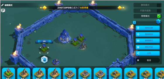 城市布局可以自由调整,点击建造界面的锤子图标进入编辑模式。在这里你可以拖动建筑改变位置,甚至整体移动所有建筑。建议将功能相似的建筑放在一起,比如兵营区集中训练建筑,生产区集中资源建筑。夜晚模式能让你更清晰地查看布局效果,而只显示道路功能则方便检查交通是否流畅。