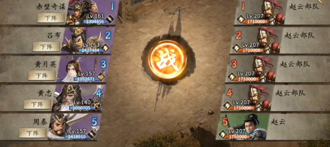 进场后需保持平砍节奏,利用城池地形加成提升输出效率。当遭遇赵云本体时,必须确保甘宁保留至少一次战法用于打断赵云技能,否则其高伤战法会直接击穿战车护甲。周泰和貂蝉作为肉盾无需追求存活,只需分担足够伤害即可。若战车护甲被击破,可考虑重置副本调整装备,优先强化防御类御宝如黄杯、黄符等。