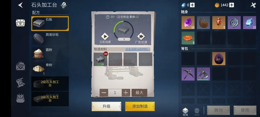 工作台可是咱们建造家园的核心工具之一,尤其是木工台,它能帮咱们把砍来的木头加工成各种建筑材料。比如松木板、铁杉木板这些基础材料,都得靠木工台来制作。打开木工台界面后,你会看到制造和升级两个选项,升级需要消耗特定资源,但别急着点,先确保材料够用哦!升级后的木工台能解锁更多高级木板,比如铁杉木板,这可是后期搭建防御建筑的关键。
