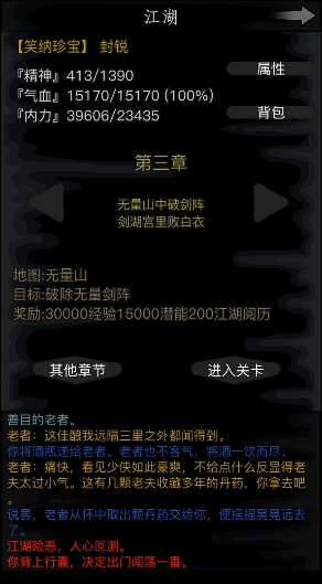走到平地时会遇到一把生锈的剑,捡起来收好。大松林本质上是个寻宝地图,所有捡到的东西都是后续章节的过渡道具。如果走累了,可以按固定路线休息调整:从起点先往左上,再右转,接着连续两次右上,之后左转并右下两次,最后选择左下和上方。这套走法能带你到龙树园,用之前换到的介绍信找白发老者拿漆黑棍子。最后把棍子交给大理石匠换地煞棍。