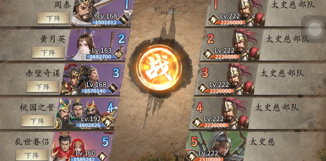副本的难点在于太史慈的高伤害战法和防御能力,因此需要合理利用地形和技能克制。平原突击对太史慈效果不错,马超和甘宁的配合能有效压制敌方输出。如果发现战局不利,可以适当调整装备,比如给黄忠增加强防属性,或者让夏侯惇带更多血量装。多尝试几次,熟悉敌方行动规律后,通关会更容易。