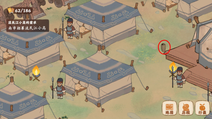 找到军营位置,首先要完成前置任务。当咱们的等级达到16级且舒适度达到1500后,会解锁南有乔木剧情任务,这是进入军营的关键。跟着剧情指引来到海棠花林,与周瑜对话后需要修补断桥,完成后就能继续推进任务。之后在城门守卫处选择入城方式,返回海棠花林找到盗贼并对话,最终获得入城令才能正式进入城内区域。