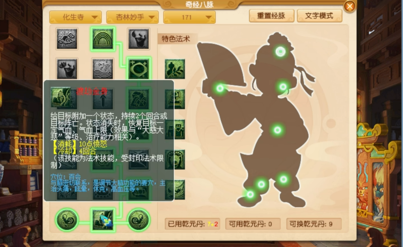 除了属性,化生突破还会带来技能和法宝方面的显著改进。技能效果会得到优化,比如核心群疗技推气过宫的恢复目标数量或治疗量可能增加,金刚护法等增益技能的持续时间或效果也会提升。法宝方面,突破后可能解锁新的法宝修炼等级,或者增强现有法宝的加成,比如碧玉葫芦这类提升治疗强度的法宝,在突破后能提供更高的气血回复比例。经脉系统的调整也可能让化生寺在战斗中更灵活地切换技能,适应不同战斗节奏。这些改进能让新手玩家在操作时更得心应手,不再因为技能效果不足而手忙脚乱。