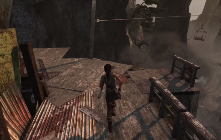 找到珊曼莎的背包后,可以从中拿到火柴、摄像机和双向无线电。进到沿岸森林找到第一个营地庇护岭,划火柴生起篝火后试图用无线电联络其他人,但只能听到嘈杂的电波声。从摄像机里可以回顾船上发生的事情,了解萝拉和惠特曼博士的意见分歧。暴风雨停歇后阳光洒落,萝拉需要动身寻找食物,这时离开营地沿山道前行,会看到树上悬吊着一具骷髅,背上有一把长弓。