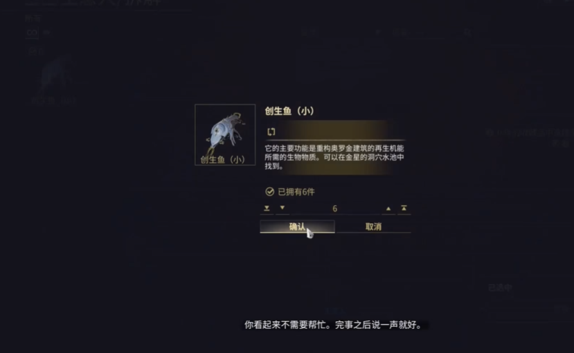 抓到创生鱼后,别忘了拆解它们获取萨根模块。回到福特纳找生意人,选择拆解伺服鱼的功能,每条小鱼能拆出一个模块。如果目标是做装备或换声望,建议多攒几条再一起处理。最后洞穴里偶尔会刷传感鱼,如果顺手抓到也别放过,它们也是不错的资源。