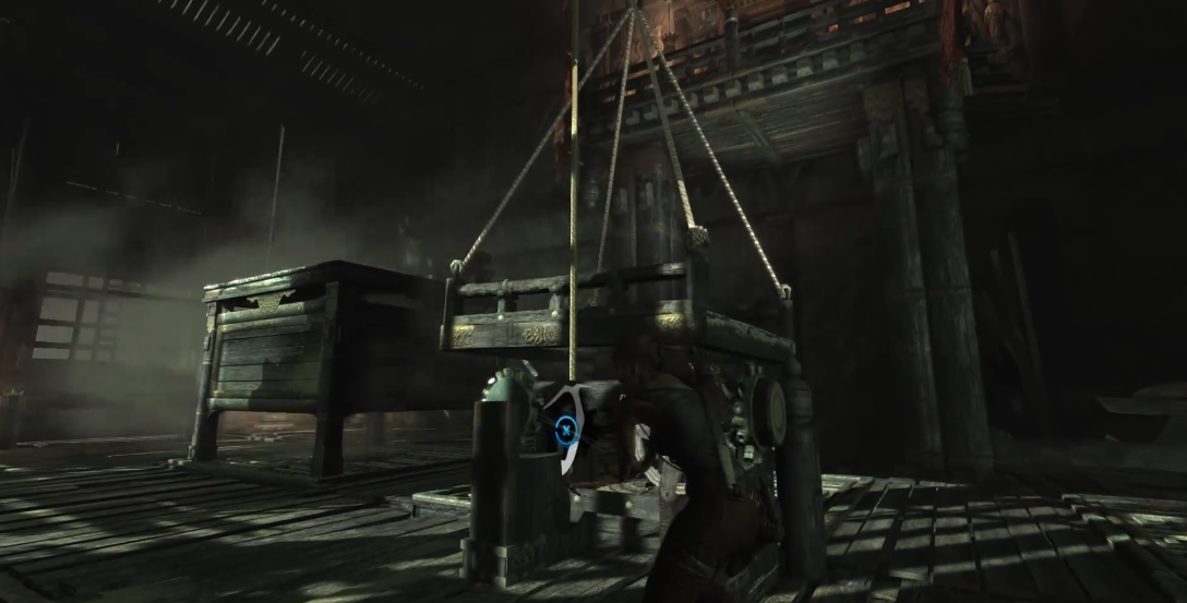 核心机制是利用风力与机关联动。首先需要找到两个开关,分别用于关闭风口和调整木板高度。操作顺序至关重要:必须先关闭风口,随后在调整木板高度的开关旁等待,直到最下方的风口被吹开时才启动升降机制。迅速攀爬至高台并跳上木板,强风会将劳拉吹向高处完成飞跃。关键在于风力完全释放前完成木板升降和跳跃动作,否则会被强风干扰导致失败。
