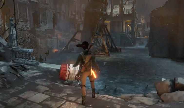 成功炸毁三处支座后,雕像会倒塌形成通路,但随后会出现被称为不死军团的遗迹守护者并展开追逐,你需要经过一段快节奏的跑酷才能成功逃出档案室。在此任务流程中,劳拉会获得无限潜水呼吸器,从而解除潜水时限。完成任务后,你可以选择重返档案室进行收集,例如位于大厅二层走廊上的文献等,部分收集品需要通过特定路径,如在特定位置使用绳索荡跳才能取得。