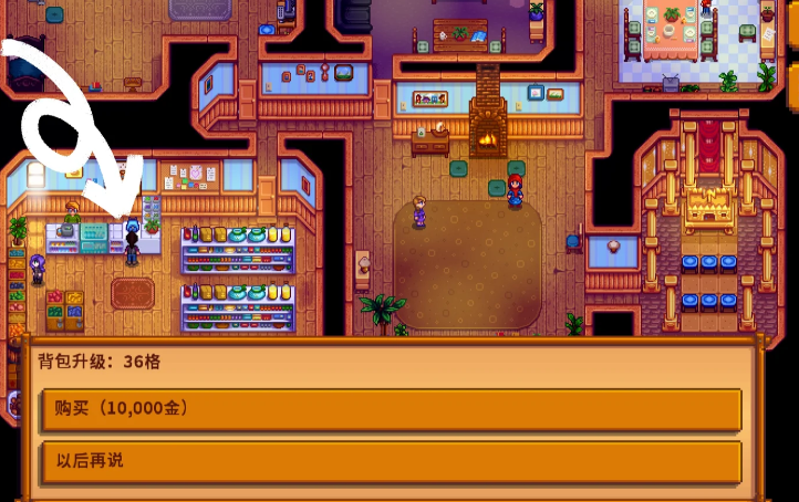 进行背包扩容的唯一地点是位于鹈鹕镇的皮埃尔杂货店。玩家需要在地图上找到该商店并确保在其营业时间内前往,营业时间通常为每天上午9点至下午5点,需要注意的是每周三店铺会休息。进入商店后,玩家应走到柜台区域,此时需要确认店主皮埃尔本人在岗,因为只有他能够处理这项交易。在柜台的右侧,可以找到一个醒目的红色背包图标,点击该图标即可交互并打开背包升级的购买界面。