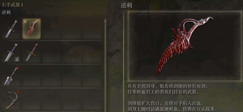 一些拥有多属性补正的武器在后期水桶号角色手中能展现出毁天灭地的威力。力、敏、感三补正的匕首逆刺,当相关属性点满后,其双持状态下的快速连击能在一瞬间造成多段高额伤害,爆发能力极为出众,被誉为后期近战DPS的天花板。这类武器的核心优势在于将高攻速与多段攻击结合,在短时间内倾泻大量伤害,迅速终结战斗,虽然需要承担手短、削韧较低的风险,但回报是顶级的击杀效率。